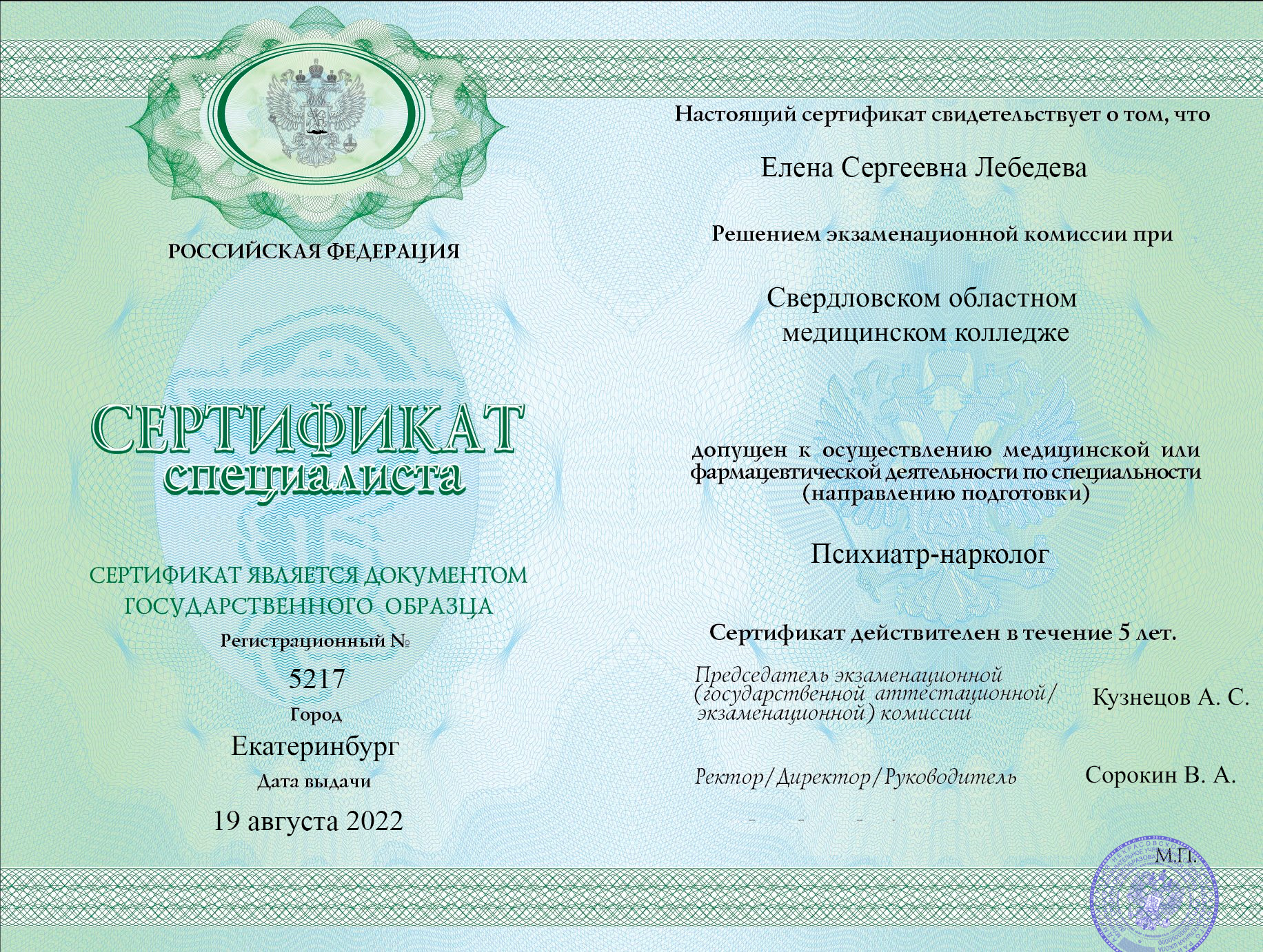Елена Сергеевна Лебедева врач нарколог клиники доктора Стукаловой в Октябрьске
